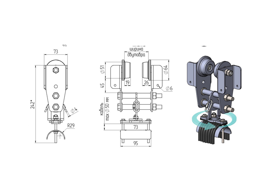 — на седло тележки допускается укладка нескольких круглых или плоских кабелей, ширина седла под укладываемые на него кабели 73 мм