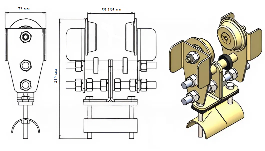 ТДВе-261 — это кабельная тележка (каретка), для подвески и перемещения кабеля по двутавровой балке.