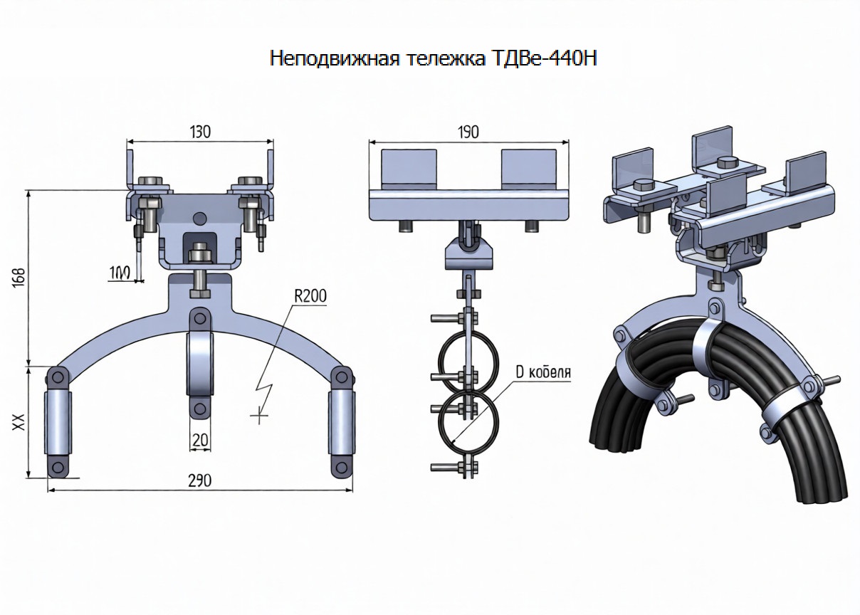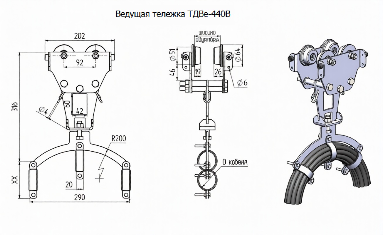 ТДВе-440 — это кабельная тележка (каретка), для подвески и перемещения кабеля по двутавровой балке.