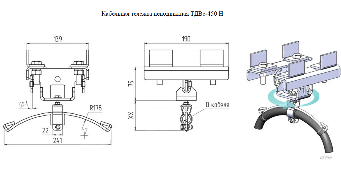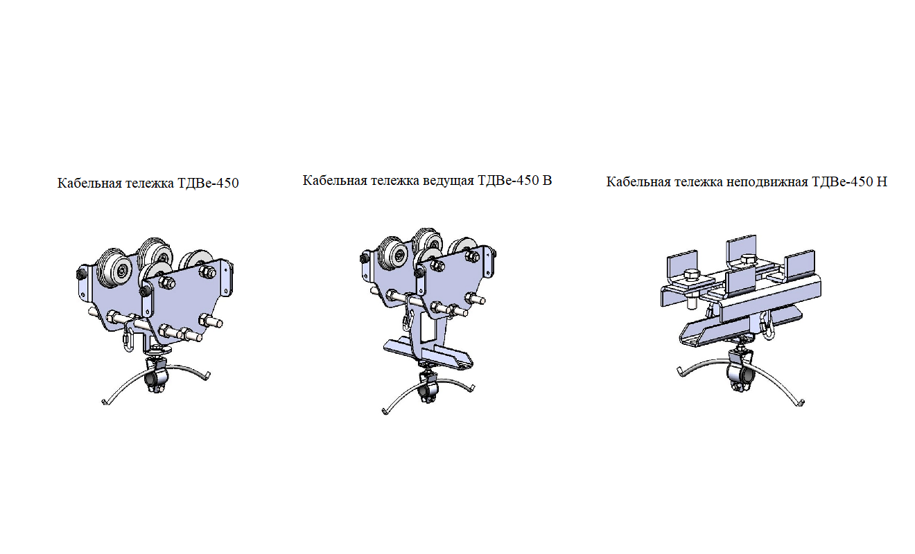 — неподвижную или концевую тележку ТДВе-450Н — устанавливается в начале линии в месте подвода кабеля, для неподвижного его крепления;
