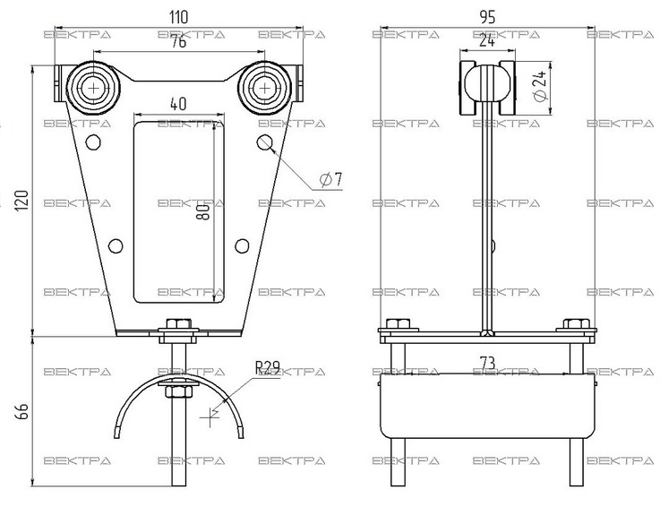 — имеет окно 40х80 мм, предназначенное для соединения с механизмом, через кронштейн-водило,