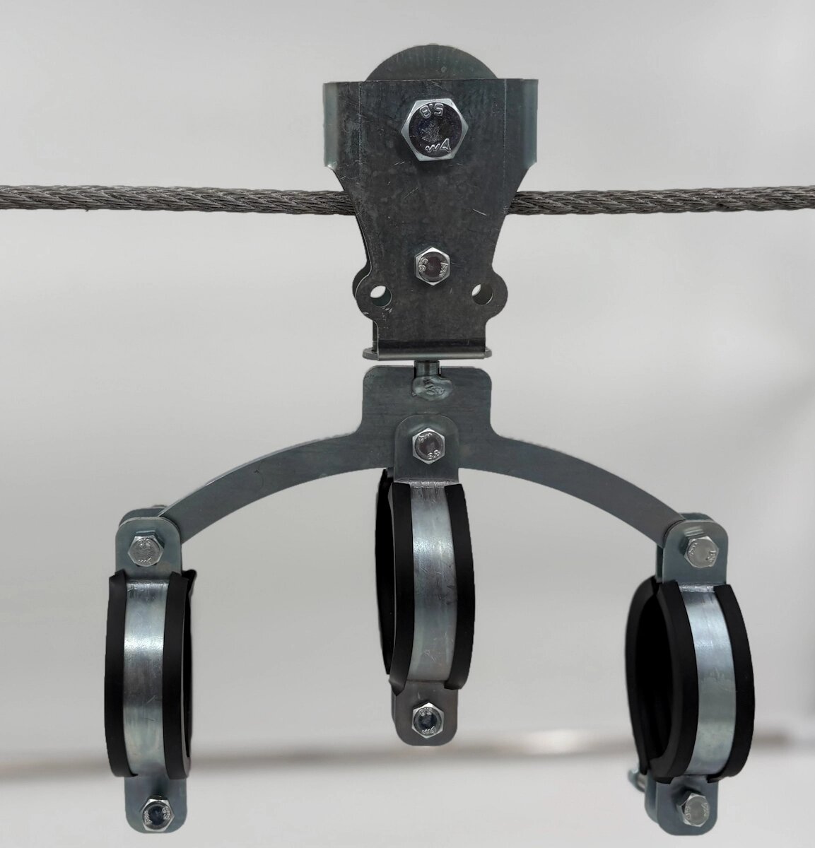 Роликовый подвес для кабелей ВЕ-5 — предназначен для перемещения по тросу пучка состоящего из нескольких круглых кабелей и проводов. Это необходимо для подвода электропитания к ГПМ и другим механизмам, которые перемещаются и не могут быть запитаны, через троллеи или другим способом.