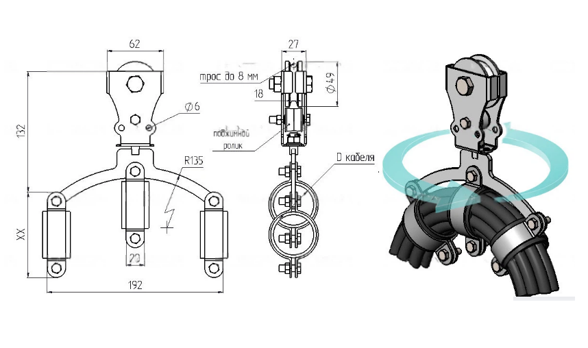 — Тросовое водило, предназначено для компенсации провиса троса, является актуальным на линиях свыше 20м