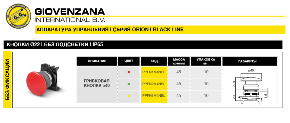 Кнопка аварийной остановки PPFN M4NBL грибковая ø40 без фиксации: