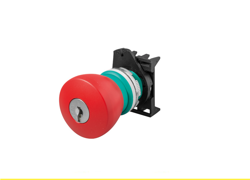 - Кнопка аварийного останова огнестойка, сделана из самозатухающего пластика, категория соответствует V0 по UL94