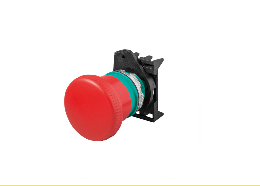 - Кнопка аварийного останова огнестойка, сделана из самозатухающего пластика, категория соответствует V0 по UL94