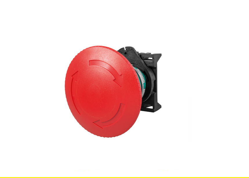 - Кнопка аварийного останова огнестойка, сделана из самозатухающего пластика, категория соответствует V0 по UL94