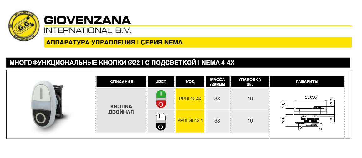 Кнопка двойная PPDLGL4X многофункциональная: