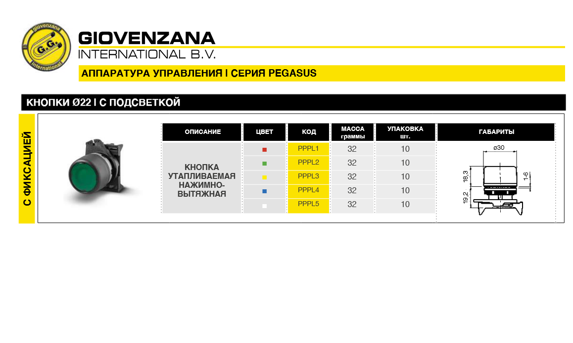 Кнопка PPPL утапливаемая нажимно-вытяжная: