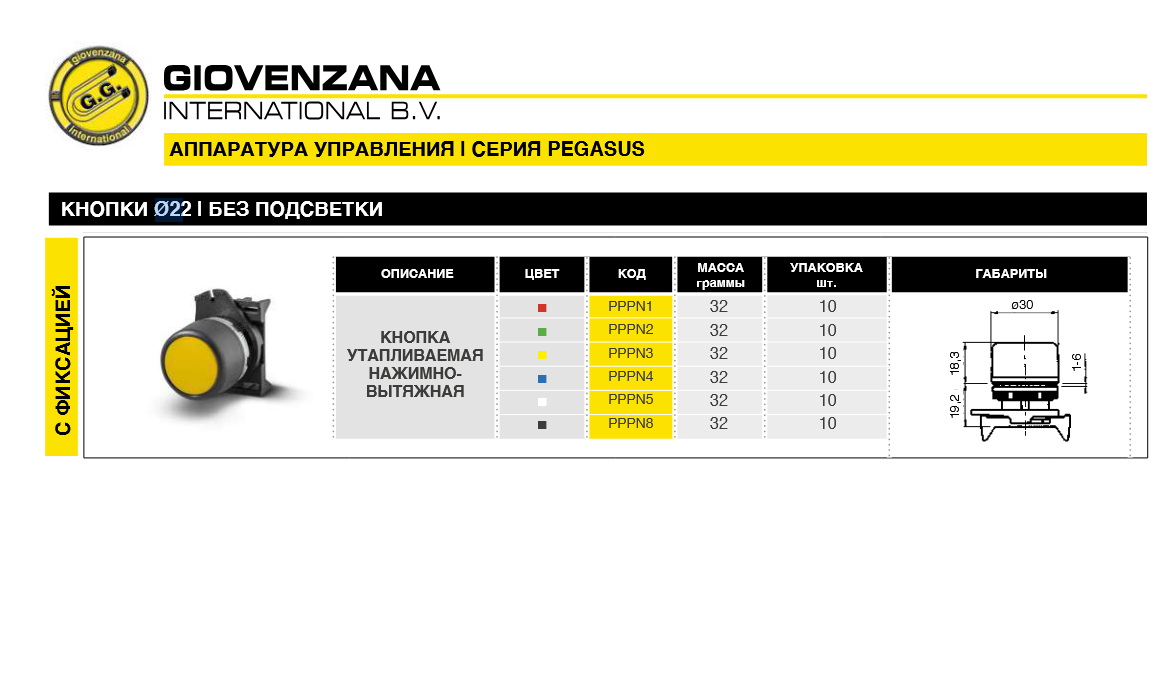Кнопка PPPN утапливаемая нажимно-вытяжная