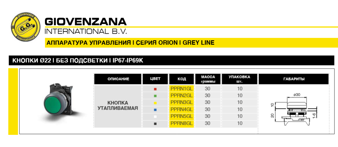 Кнопка PPRN GL утапливаемая: