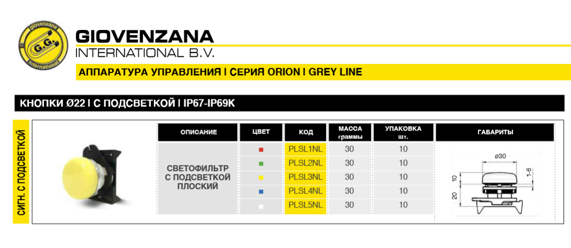 Кнопка сигнальная PLSL NL с подсветкой: