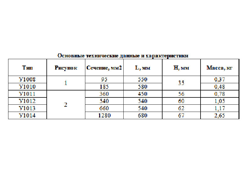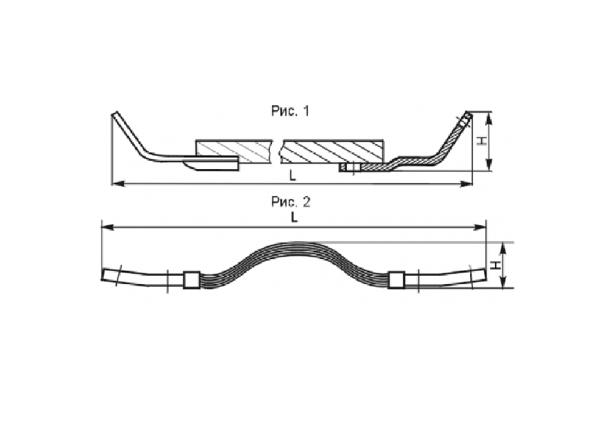 Компенсаторы троллейные состоят из алюминиевого провода (У1008, У1010) или пакета гибких алюминиевых пластин (У1011-У1014) присоединенных к стальным алитированными пластинами.