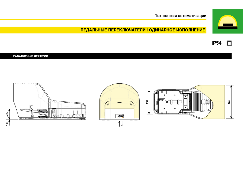 Степень защиты одинарных педальных переключателей — IP65, а двойных и с кнопкой аварийного останова — IP54. Все педальные переключатели соответствуют требованиям Директивы по машинам и механизмам и имеют знак соответствия CE.