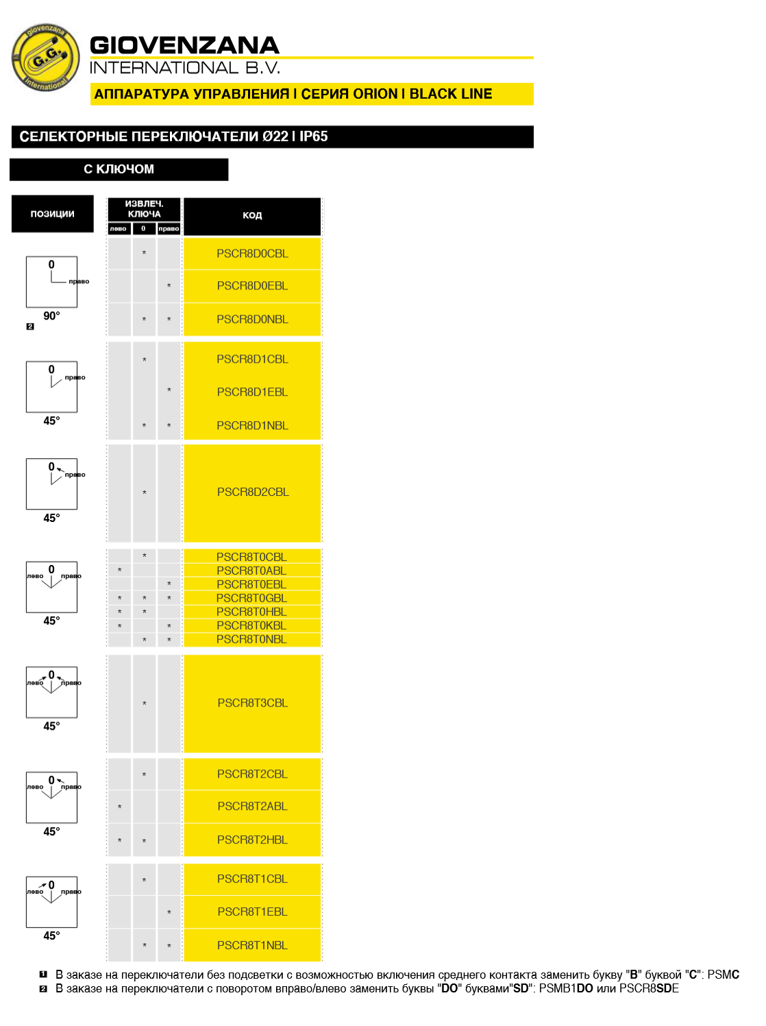 Переключатели поворотные PSCR…BL серии Orion Black имеют различные вариации исполнения: