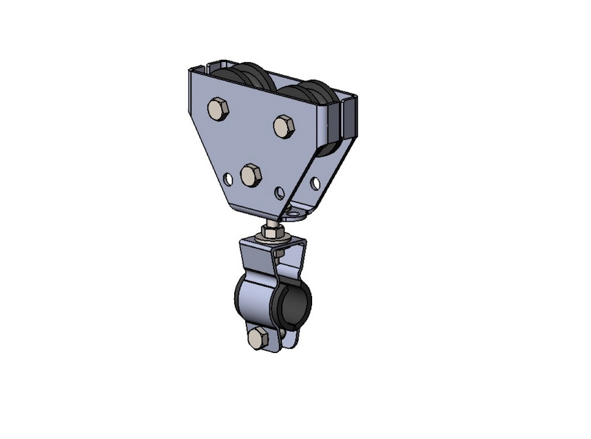 Подвесы К-2 представляют собой ролик из графитонаполненного капролона закрепленного в металлическом корпусе, снизу к скобе прикреплен кабельный зажим с возможностью вращения.
