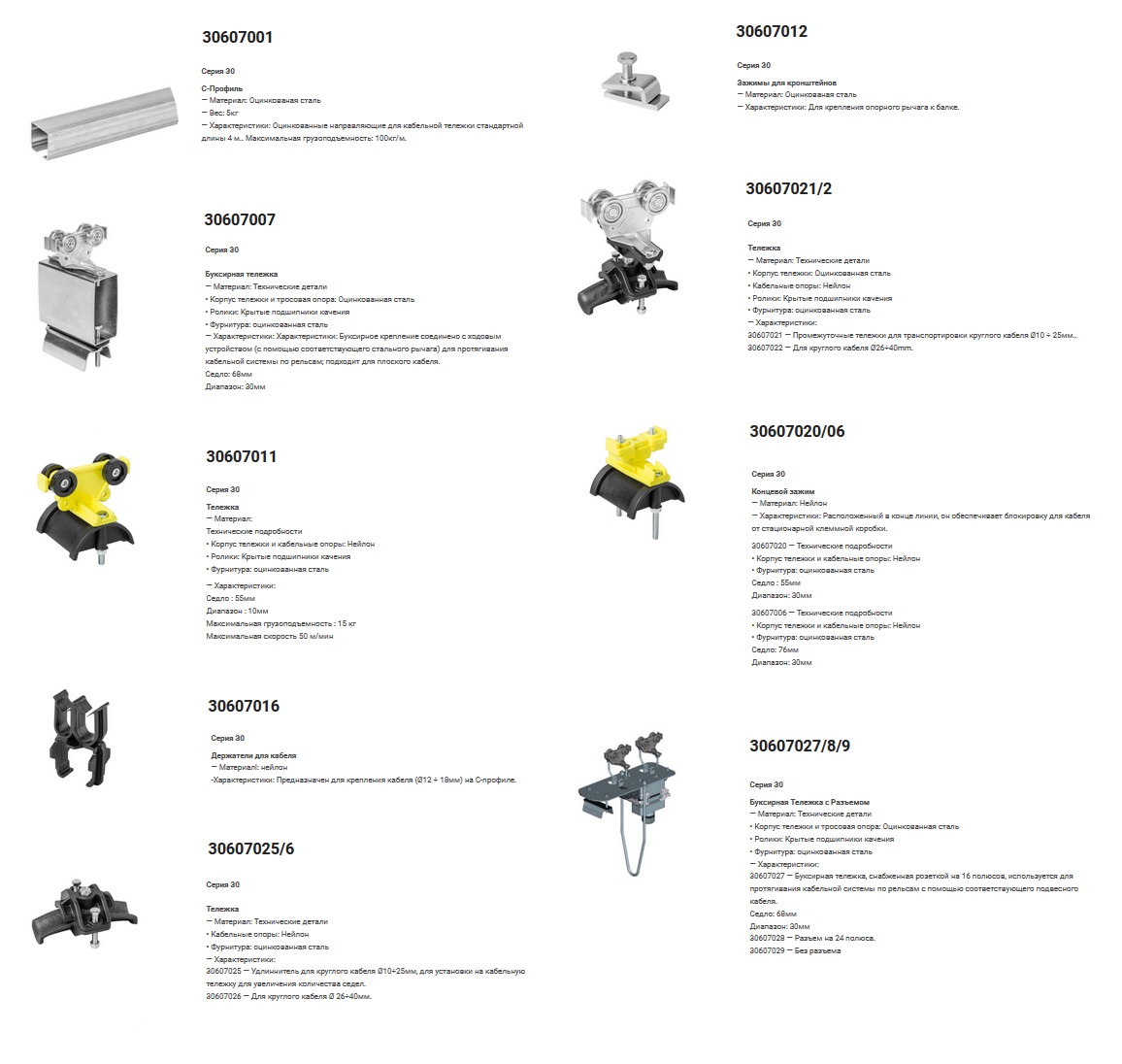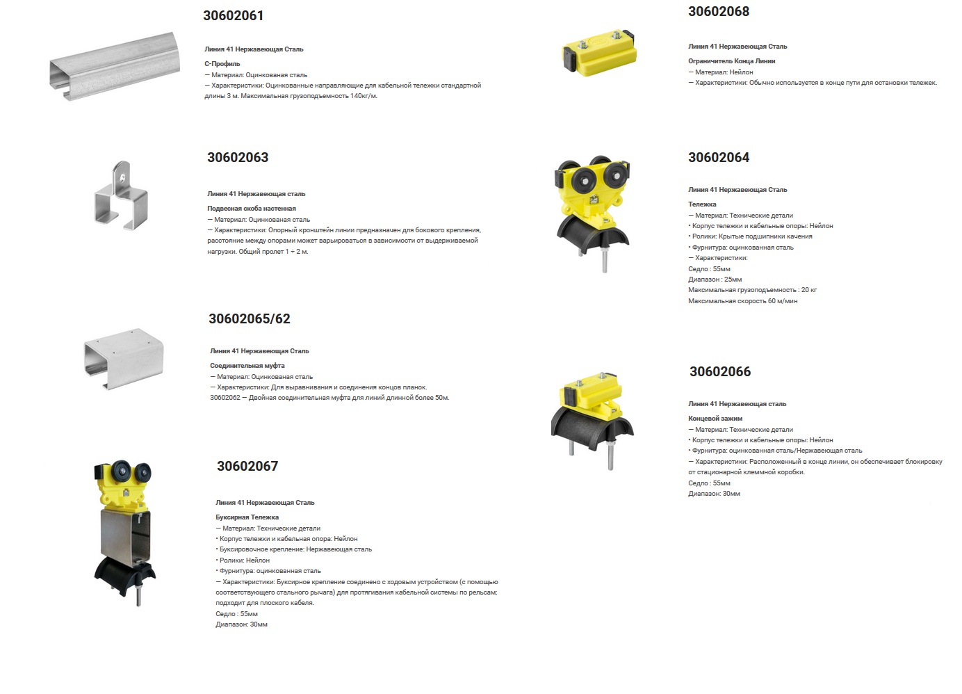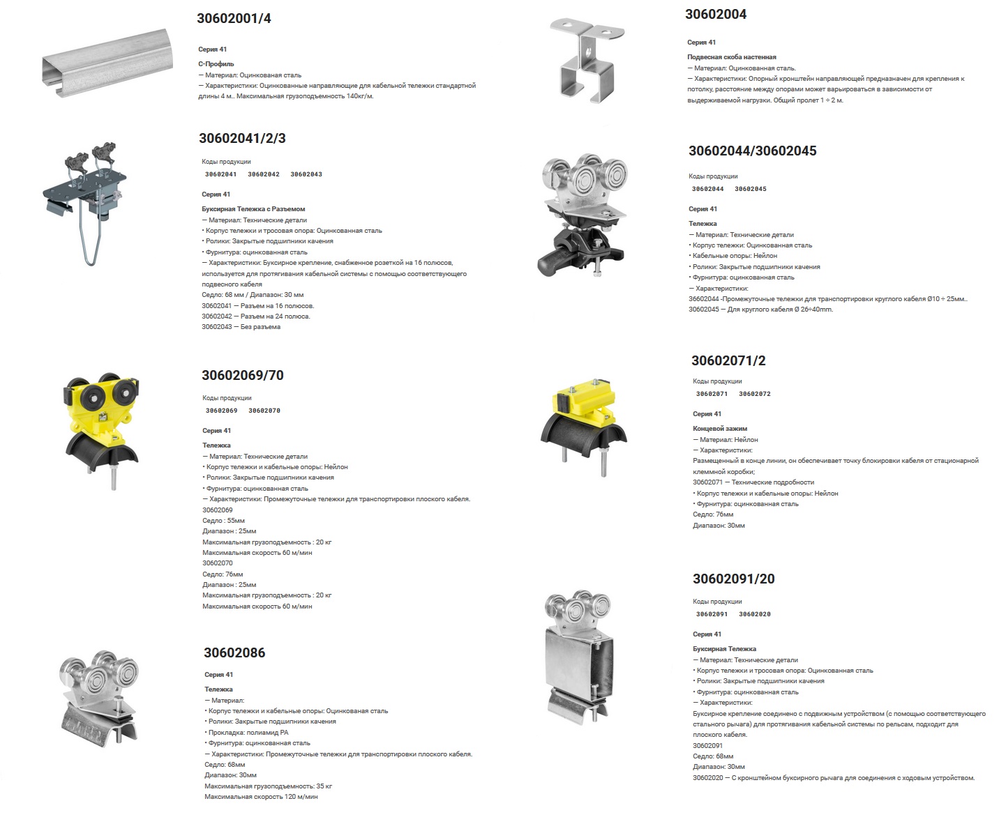 Грузоподъемность тележки: 8 кг/м / Диаметр троса: 8 мм / Скорость движения: 40 м/мин