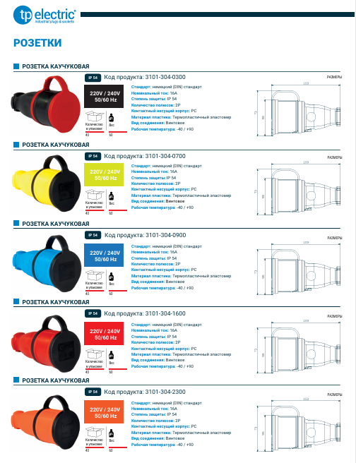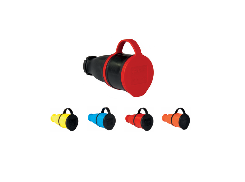 Розетка каучуковая 2Р+РЕ 16А 220В IP54 (защелкивающаяся крышка)