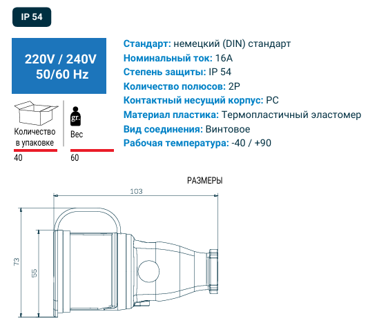 — Номинальный ток: 16A