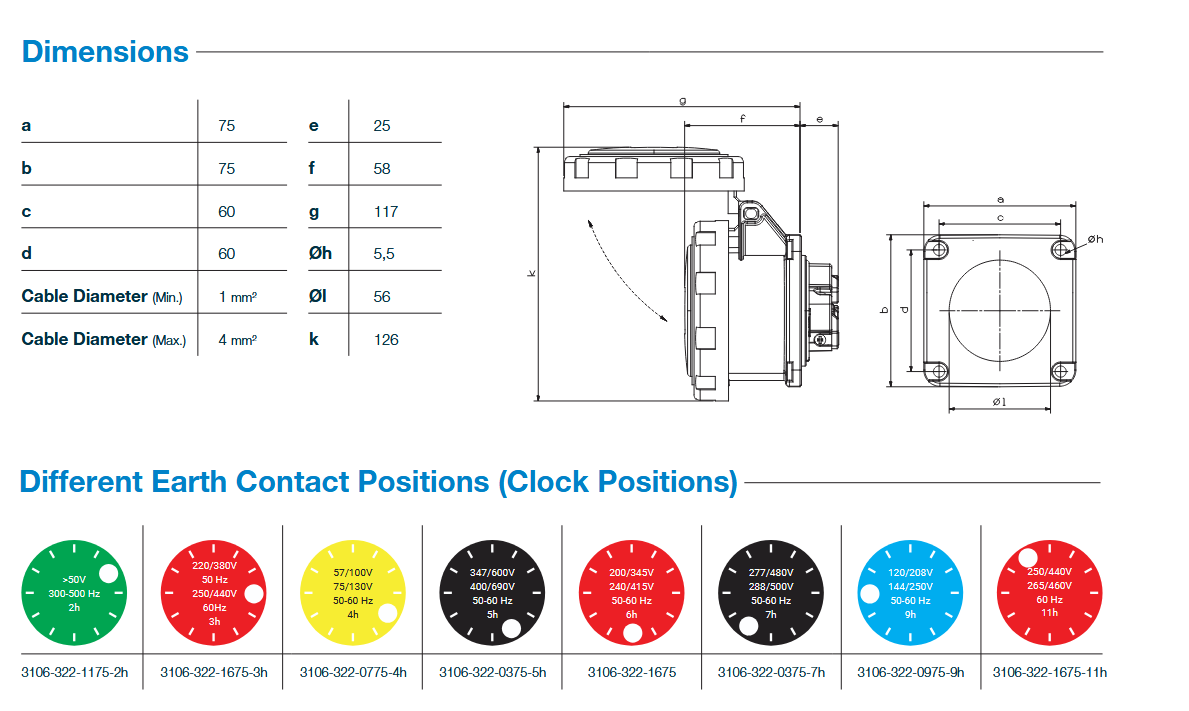 Розетки изготавливаются с разными типами подключения зажимов и разными габаритами