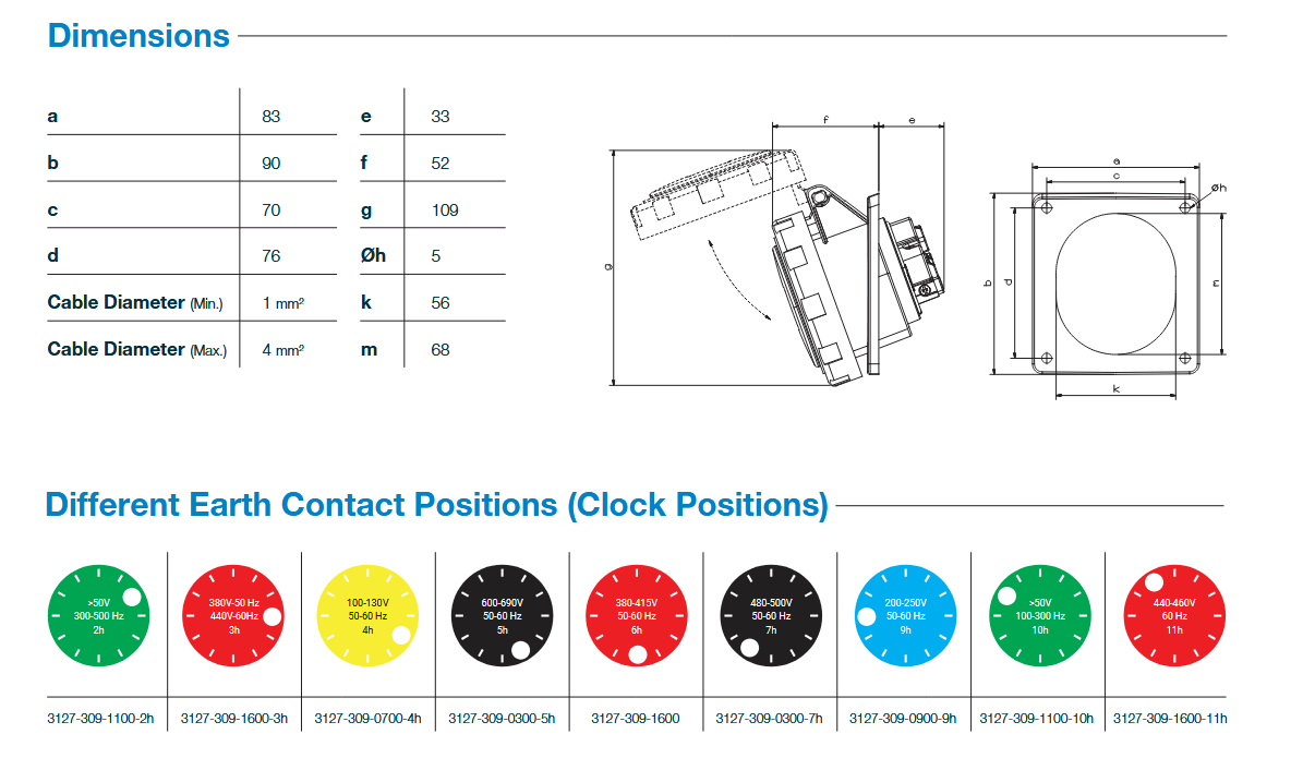 Розетка силовая встраиваемая наклонная 3Р+РЕ 16А 380-415В IP67