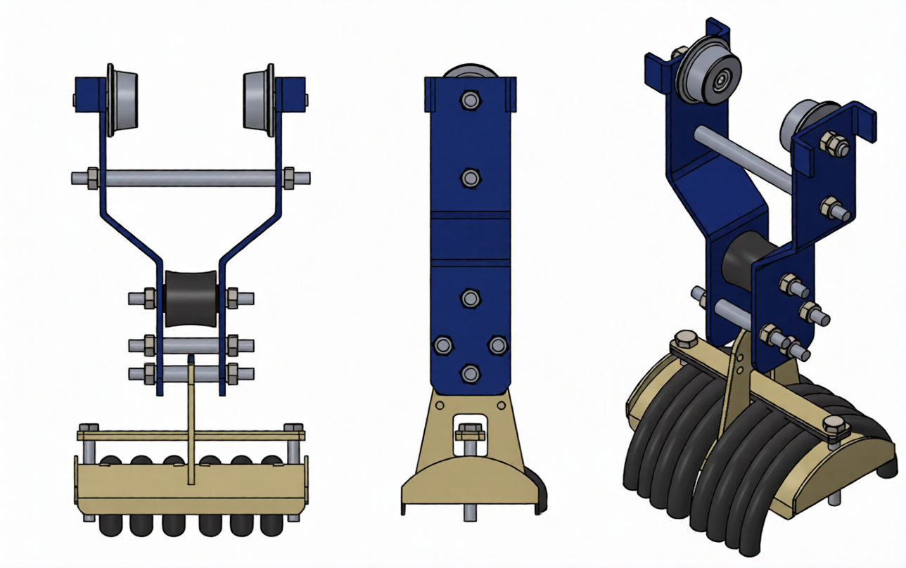 — неподвижное кабельное седло с прижимом и резиновой накладкой защищающей кабели от перетирания