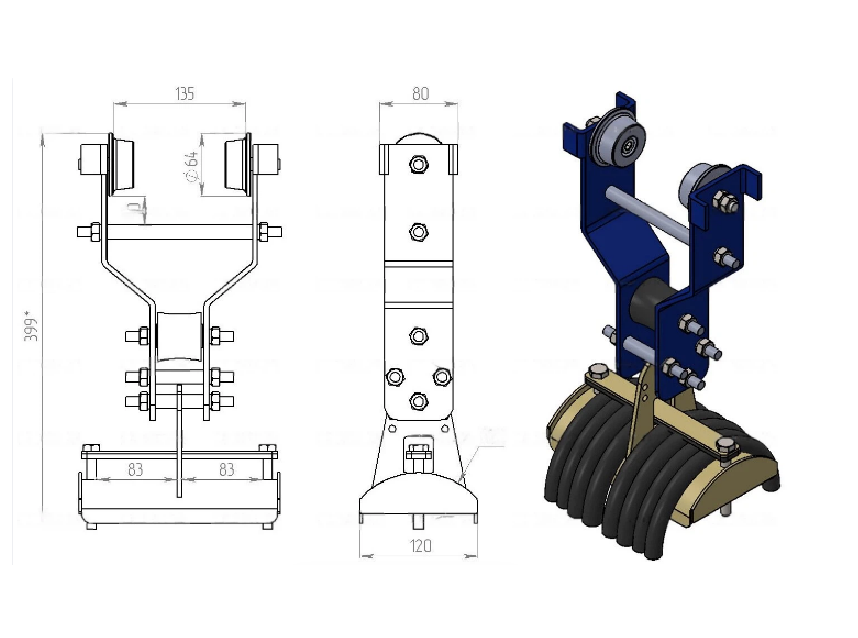 — подходит для движения по двутаврам №30 с шириной полки 135 мм
