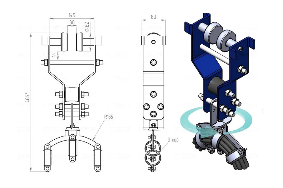 Кабельные тележки предназначаются для построения линии кабельного токоподвода грузоподъемных кранов.