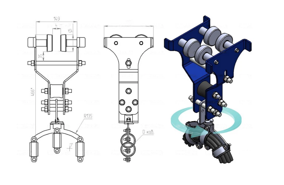 Кабельные тележки предназначаются для построения линии кабельного токоподвода грузоподъемных кранов.