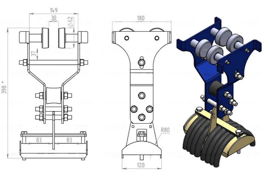 Кабельные тележки предназначаются для построения линии кабельного токоподвода грузоподъемных кранов.