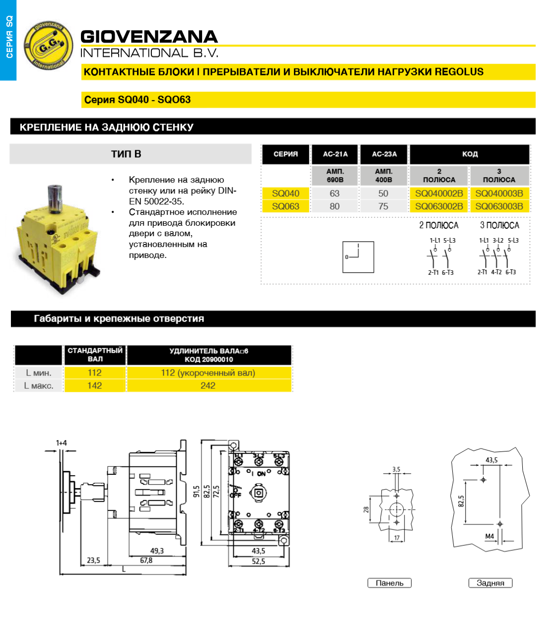 Выключатели нагрузки SQ040, SQ063 (тип B)