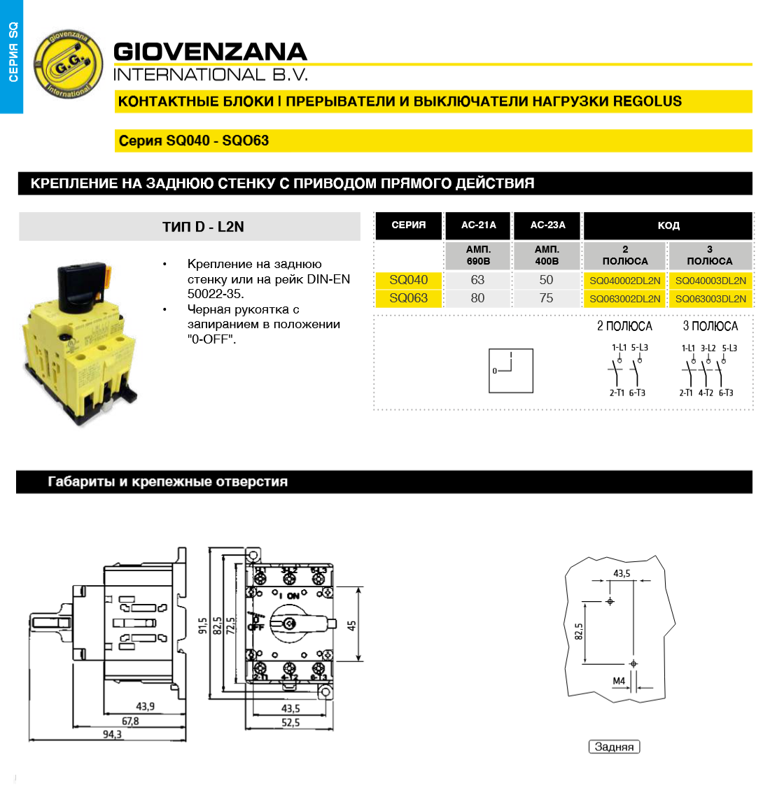 Выключатели нагрузки SQ040, SQ063 (тип D-L2N)